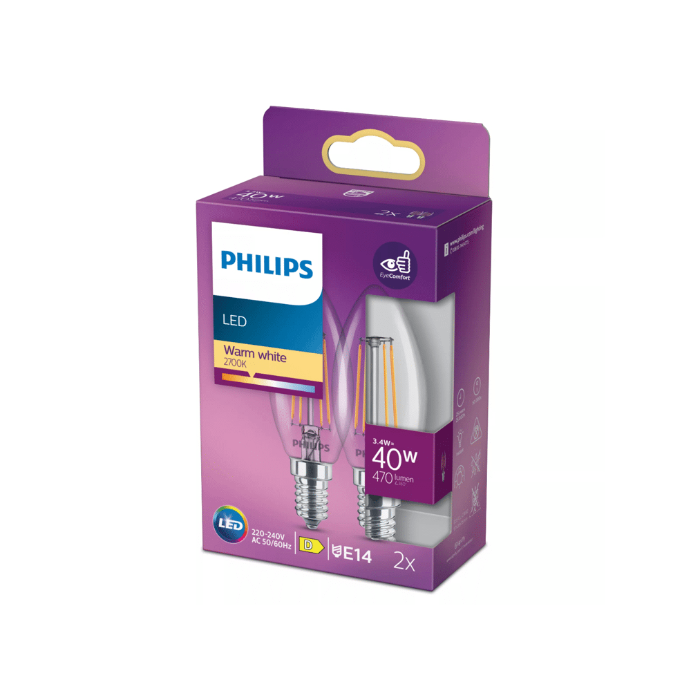 - Product: Philips Led Classic 40w B35 E14 Warm Wit Clear Niet Dimbaar 2-Pack