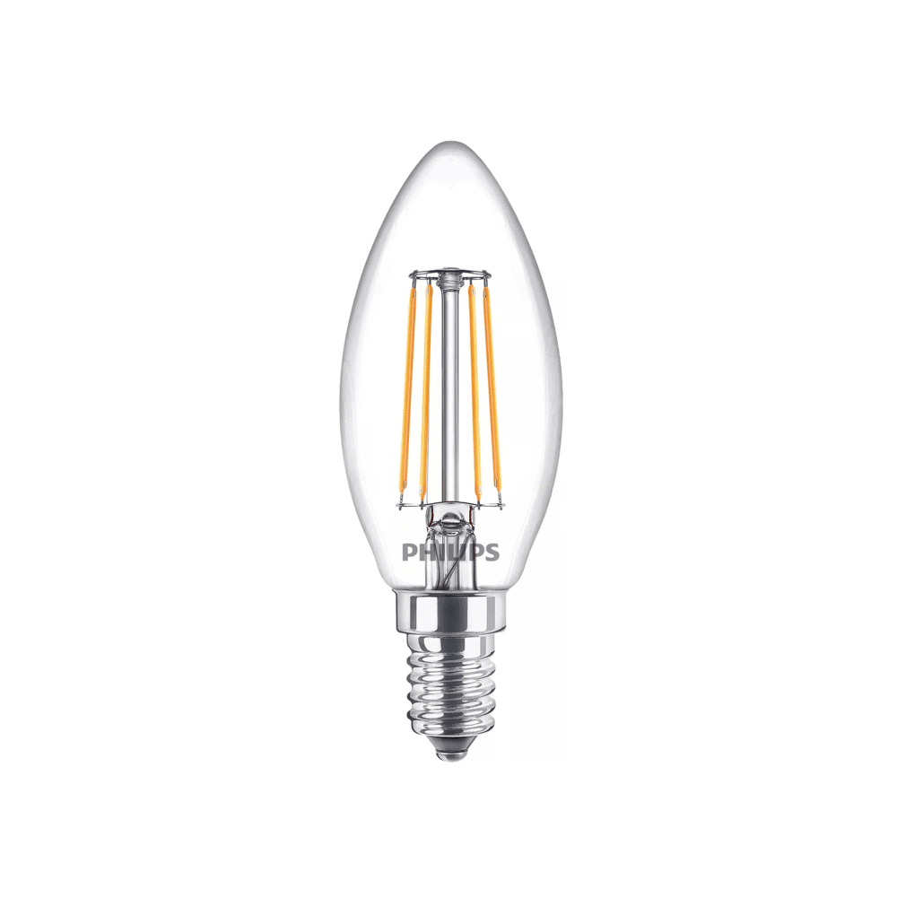 De Philips Filamentkaarslamp helder 40W B35 E14 biedt energiezuinige verlichting die je oude lampen eenvoudig vervangt zonder concessies te doen aan de lichtkwaliteit. Deze LED-lamp is ideaal voor algemene verlichting in huis en biedt direct energiebesparing met een lange levensduur.