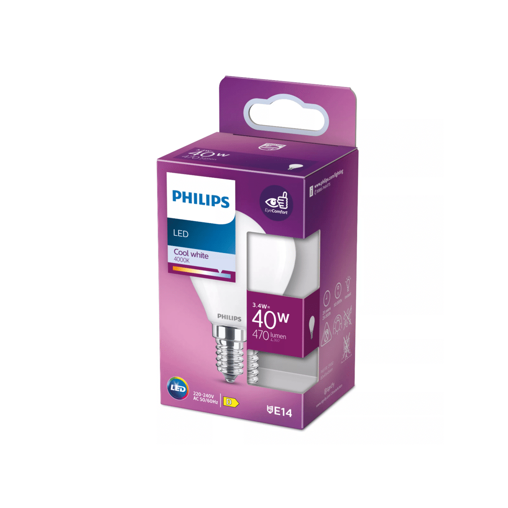 - Product: Philips Led Classic 40w P45 E14 Koel Wit Frosted Niet Dimbaar