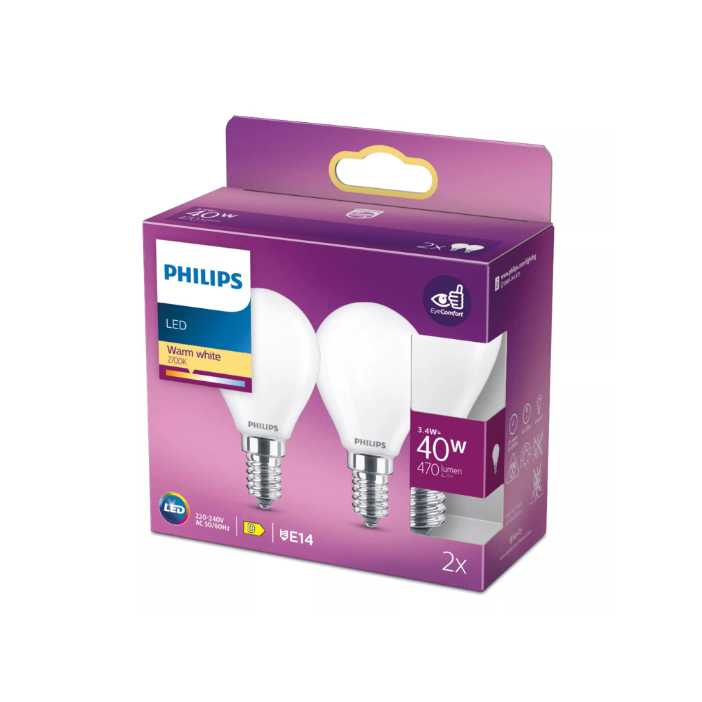 - Product: Philips Led Classic 40w P45 E14 Warm Wit Frosted Niet Dimbaar 2-Pack
