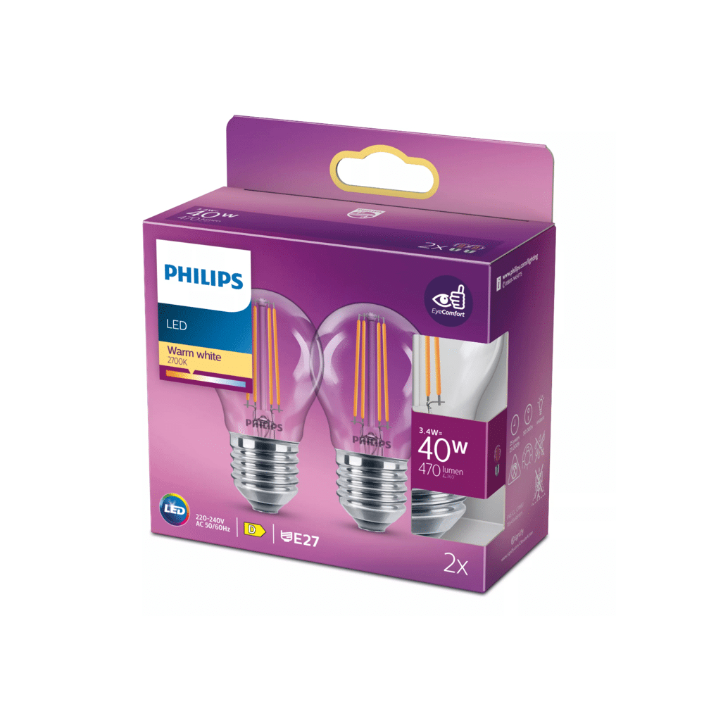- Product: Philips Led Classic 40w P45 E27 Warm Wit Clear Niet Dimbaar 2-Pack
