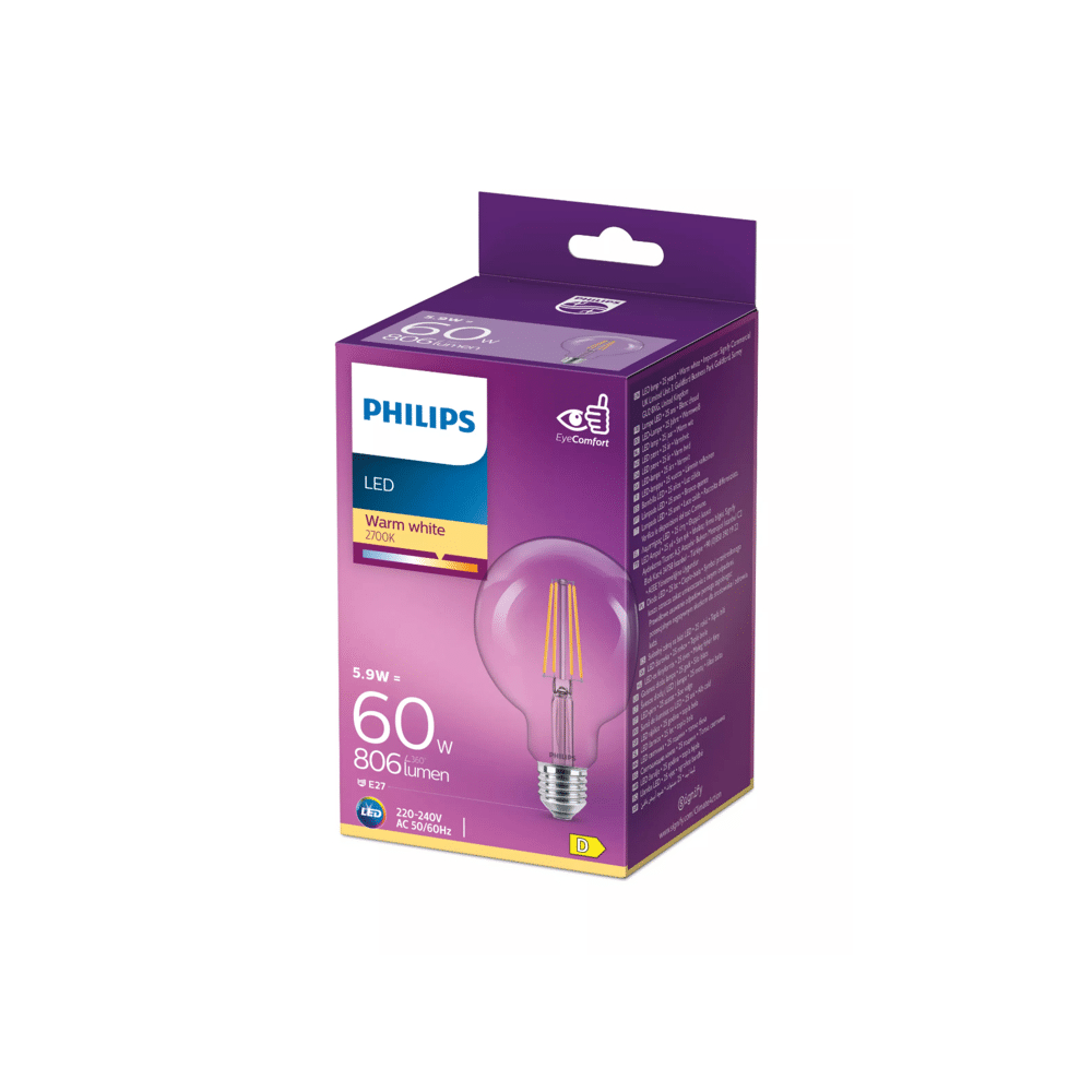 Voordelen van de Philips Filamentlamp helder 60W G95