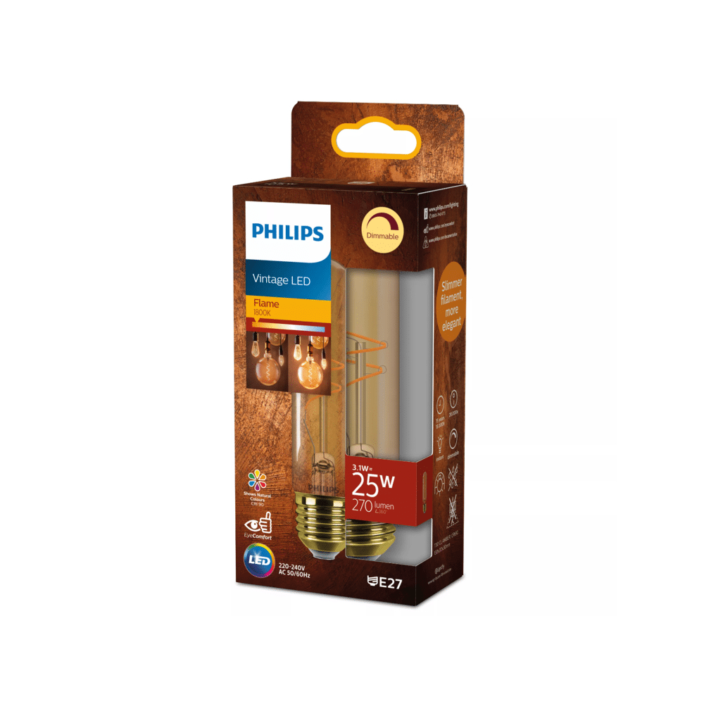 - Product: Philips Led Vintage 25w T32 E27 Gold Flame Dimbaar
