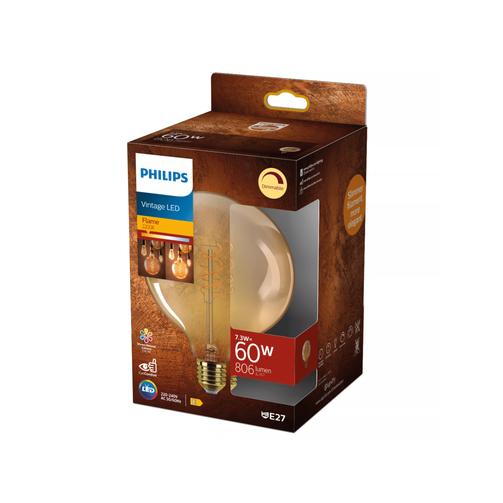 - Product: Philips Led Vintage 60w G125 E27 2200k Amber Flame Dimbaar