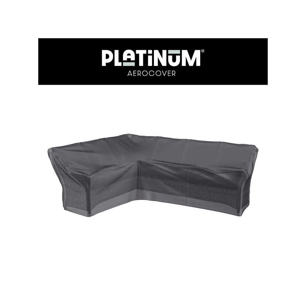 Bescherm je L-vormige loungeset met hoge rug tegen regen, vuil en zon met de Platinum Aerocover. Duurzaam, waterafstotend en ideaal voor langdurig buitengebruik.