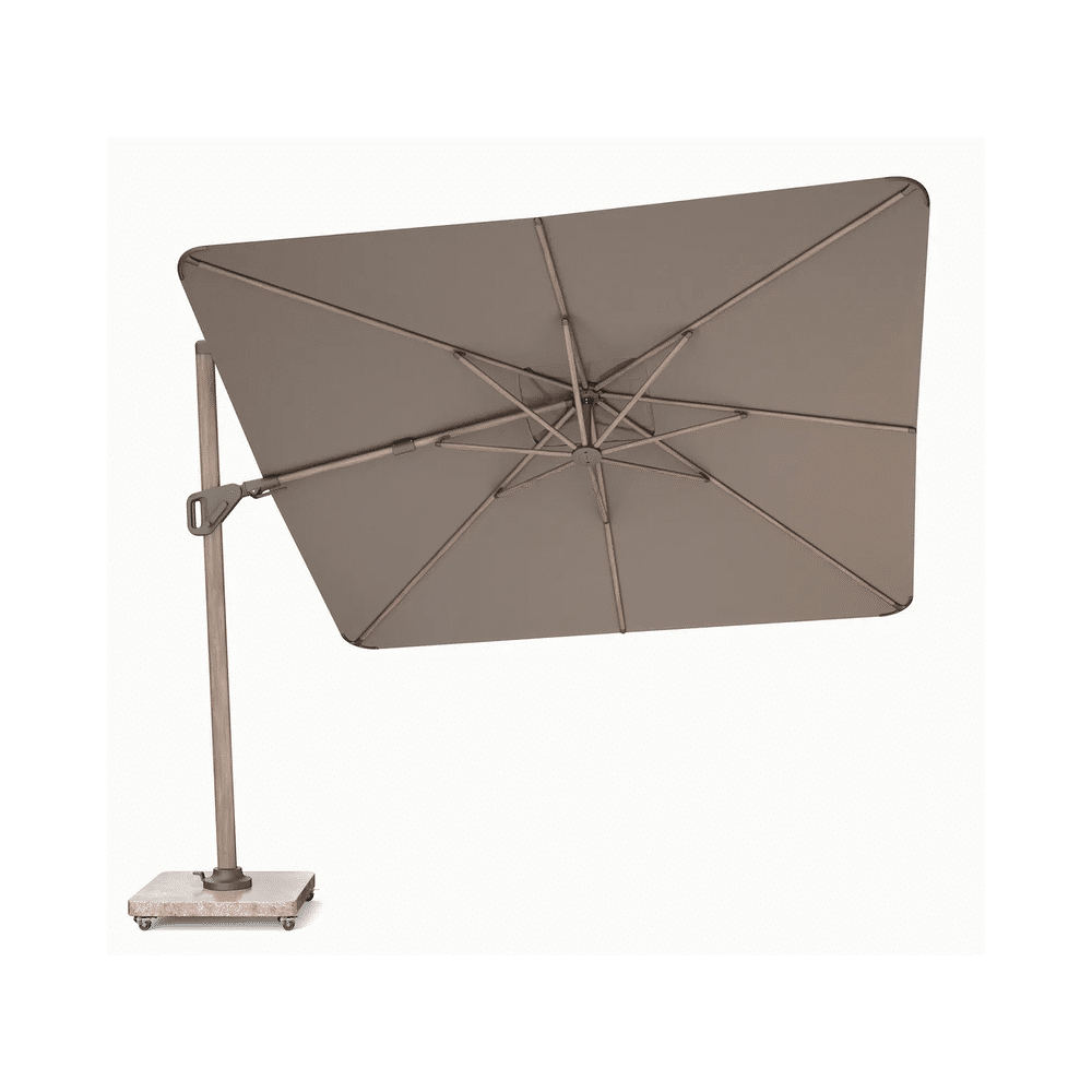 Deze premium parasol heeft een formaat van 3x3m en combineert duurzaamheid en elegant design. Het Mocha/havana kleurenschema geeft een warm en luxe effect in elke buitenruimte.