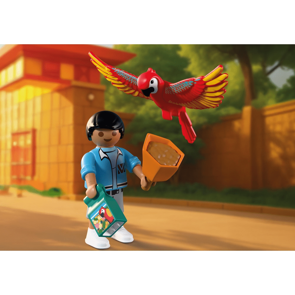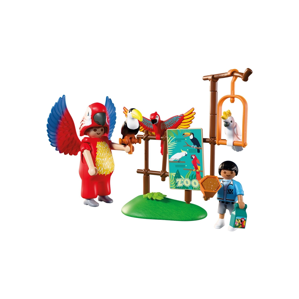 Playmobil 72074 Dierentuin Mascotte brengt tropische charme tot leven. Met het papegaaienpak en interactieve vogels creëren kinderen een vrolijk, fantasierijk avontuur vol spel en ontdekking.