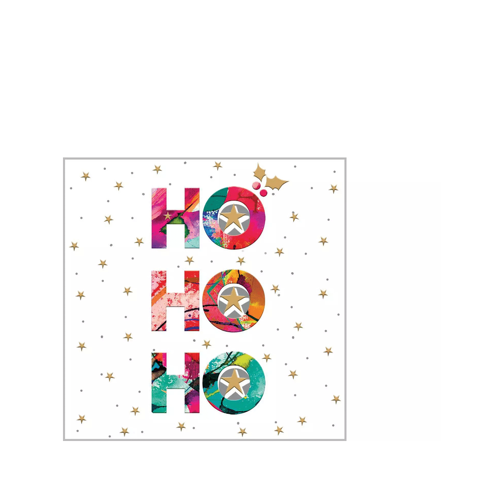 Met de PPD Servetten Ho Ho haal je instant kerstvreugde in huis. Hun speelse en vrolijke design tovert een glimlach op ieders gezicht, perfect voor feestelijke momenten. Gemaakt van kwalitatief papier dat stevig en zacht aanvoelt. Compact formaat, ideaal voor aperitiefhapjes of desserts.