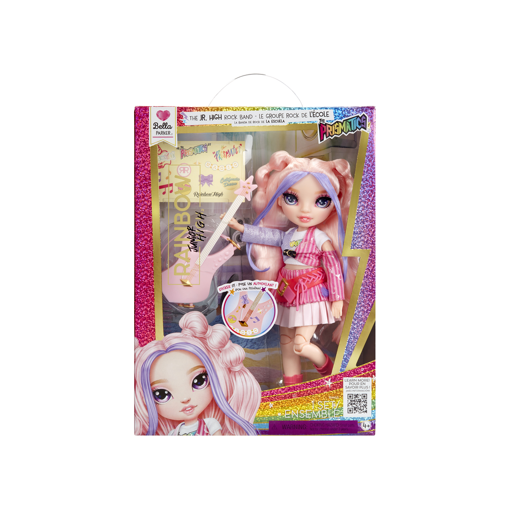 Laat kinderen hun creativiteit ontdekken en samen met hun favoriete vriendinnen van Rainbow High de sterren van de rockband worden. Elke modepop is klaar voor het podium met haar eigen instrument en personaliseerbare stickers om de look helemaal eigen te maken.
