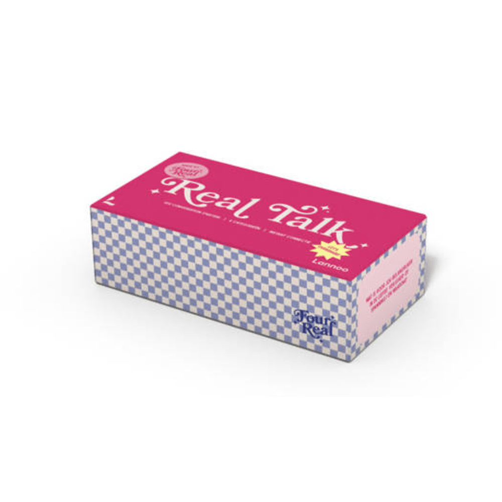 Real Talk is een interactief en verrassend kaartspel dat echte gesprekken op gang brengt. Perfect voor plezier, verbinding en onvergetelijke momenten met vrienden en familie!