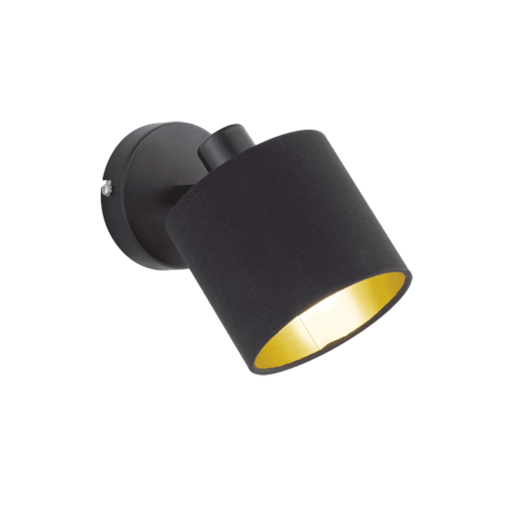 De Trio TOMMY 1-lichts spot biedt een gezellige en sfeervolle verlichting, perfect voor elke ruimte. De textiele kap zorgt voor een warm, knus effect, terwijl het moderne design met een mat zwart metalen frame en een zwart-gouden stoffen kap stijlvolle lichtaccenten creëert. De draaibare kop heeft een diameter van 12 cm en kan nauwkeurig worden gericht, zodat je de verlichting kunt aanpassen aan jouw behoeften. Werkt met E14 LED-lichtbron (excl. 28W) voor energiezuinig en duurzaam gebruik.
