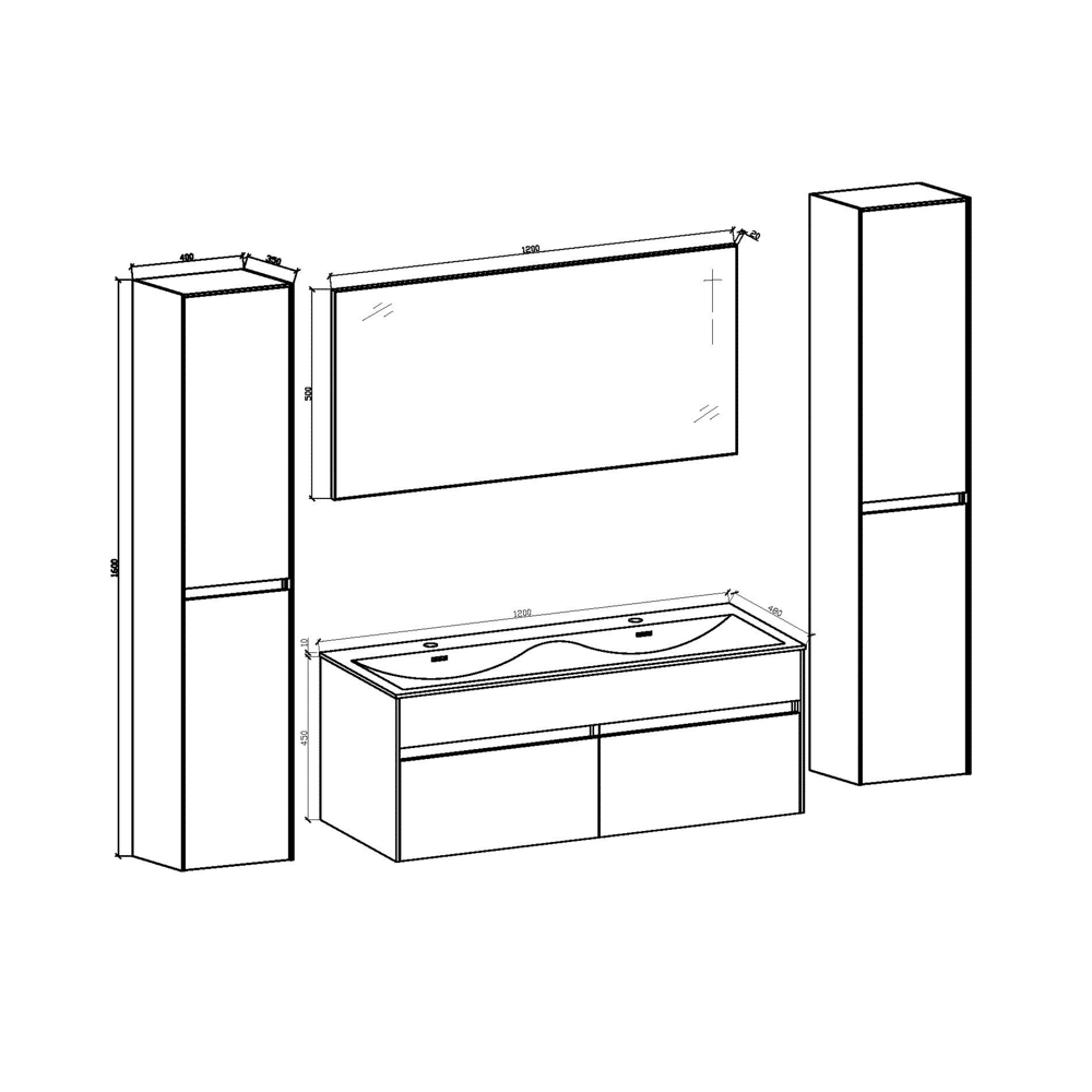 - Product: Roma Onderkast/wastafel/spiegel 120cm Wit