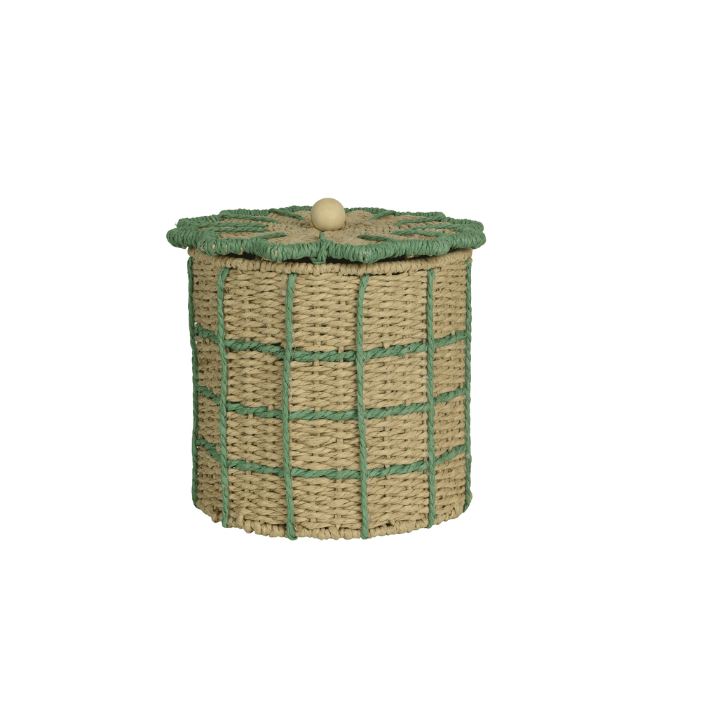 Het natuurlijke papiermateriaal gecombineerd met de handgeschilderde details maakt elke mand uniek. De bijpassende deksel zorgt ervoor dat je spullen netjes weggewerkt zijn. Ideaal voor wie houdt van een eigentijdse of eclectische stijl.Wat zijn de voordelen?