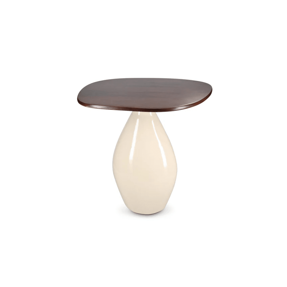 Het ivoorkleurige houten blad geeft een natuurlijke, luxe touch. Stevig en duurzaam, deze bijzettafel is zowel functioneel als een stijlvol statement in je ruimte.