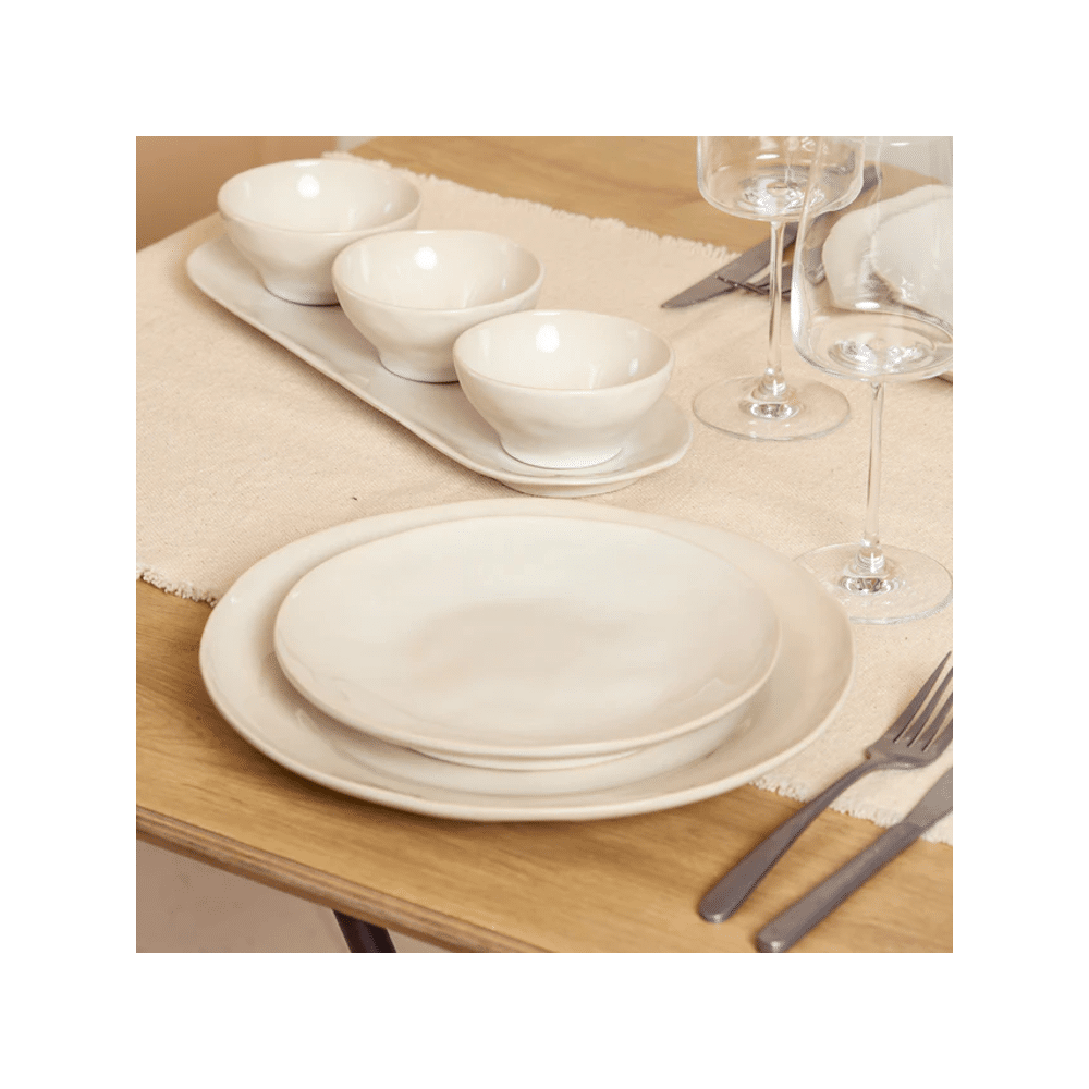 Het Rocca bord is gemaakt van hoogwaardig keramiek en voelt stevig en duurzaam aan. De neutrale beige tint voegt een warme en tijdloze uitstraling toe aan je serviescollectie, perfect voor elke gelegenheid.