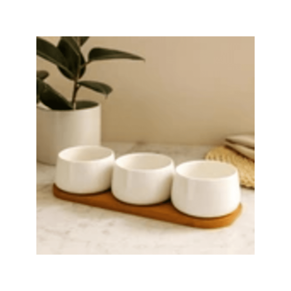 De Serveerset 4 stuks Porselein Bamboe combineert stijl, duurzaamheid en praktisch gebruik. Serveer je gerechten natuurlijk, elegant en georganiseerd.