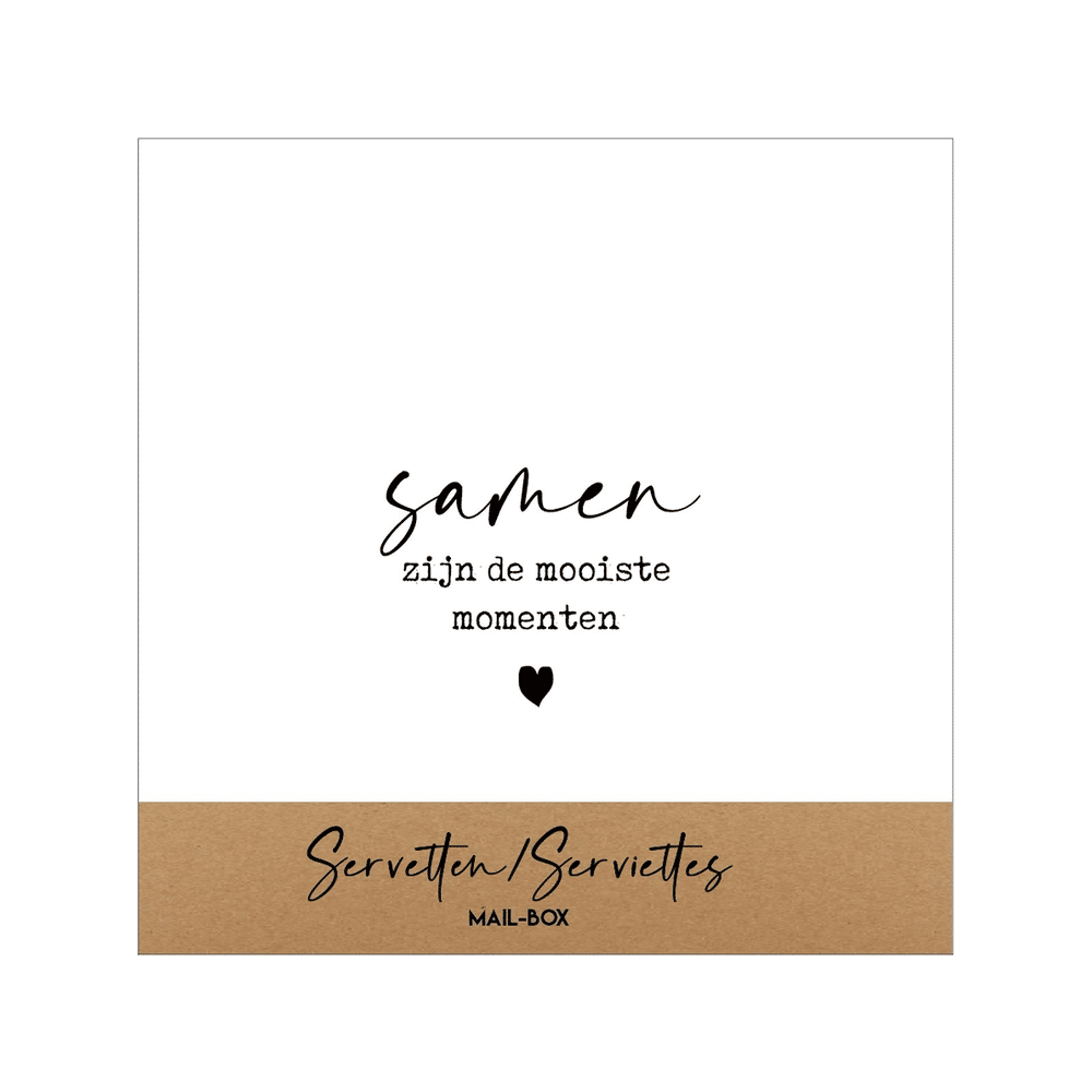 De servetten "Samen Zijn De Mooiste Momenten" combineren gezelligheid, stijl en praktische bruikbaarheid. Perfect om je tafel feestelijk en persoonlijk aan te kleden!