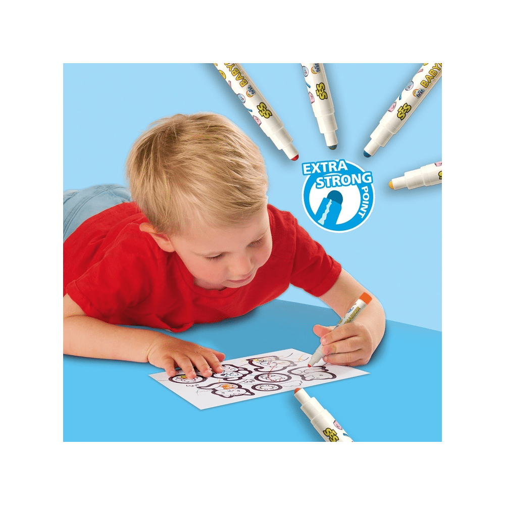 - Inclusief 5 stevige babymarkers in heldere kleuren