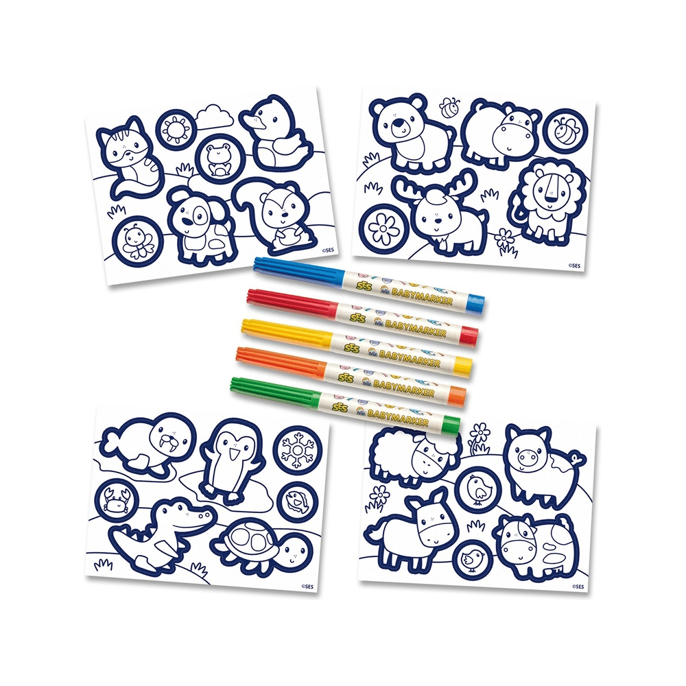 Laat je kleine artiest schitteren met de My First - Stickers kleuren van SES Creative. Grote stickers, dikke lijnen en vrolijke babymarkers maken kleuren superleuk én eenvoudig. Perfect voor nieuwsgierige handjes vanaf 1 jaar!Speciaal voor kleine kunstenaars