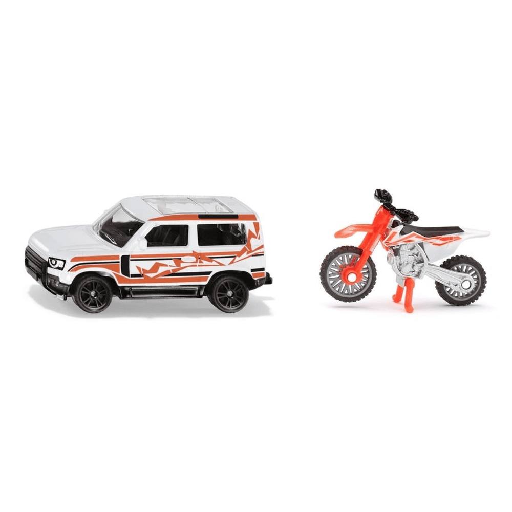 Ga op ontdekkingstocht met de Siku 1114 Land Rover Defender met KTM. Deze set combineert een robuuste miniatuur Land Rover met een stoere KTM motor, klaar om elk avontuur na te bootsen. Ideaal voor spelen, verzamelen of tentoonstellen!