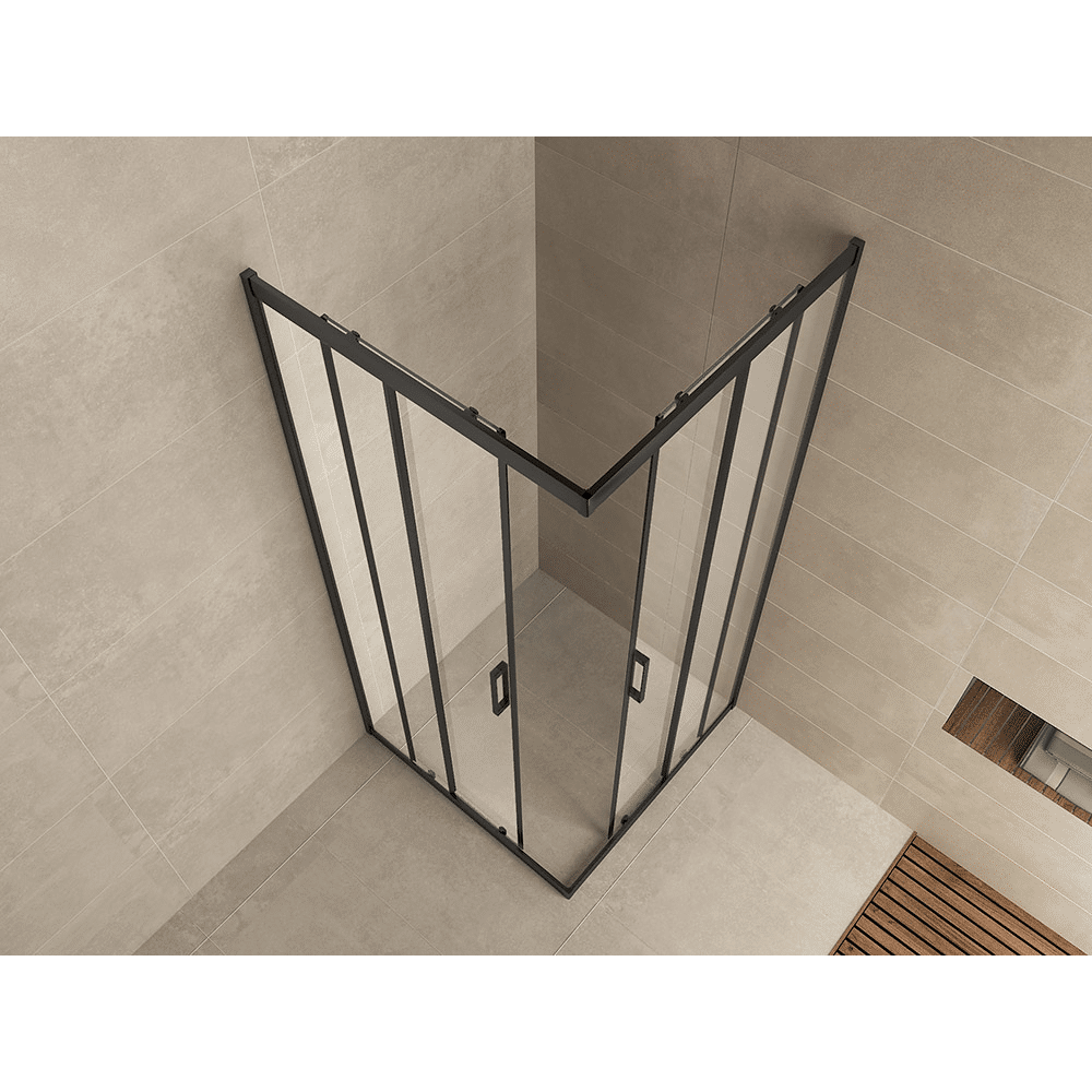 Skyline Hoekinstap Cabine Met 2 Schuifdeuren 1000 X 1000 X 2000 X 8 Mm Nano Helder Glas/mat Zwart