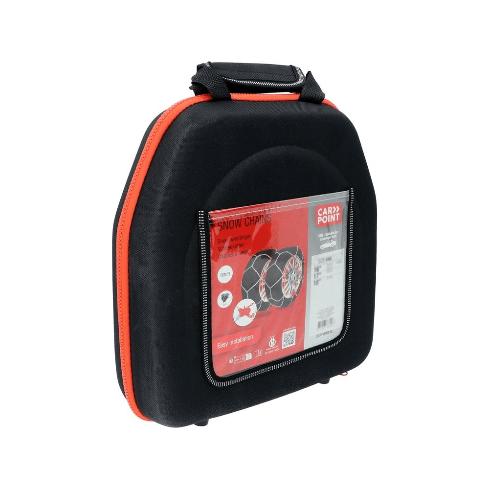 Met de Carpoint Sneeuwkettingen KNS 90 9mm vertrek je zorgeloos op winteravontuur: snel gemonteerd, veilig onderweg en altijd klaar voor plots sneeuwplezier.