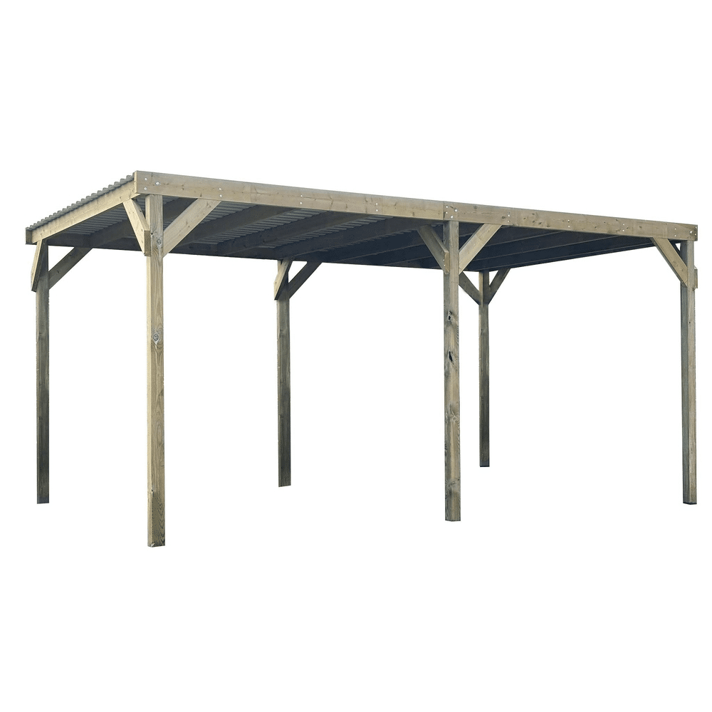 Deze carport combineert duurzaamheid en bescherming. Met een metalen dak, een gebruiksoppervlak van 13,28 m² en een totaaloppervlak van 15 m², staat jouw auto altijd droog en veilig. Het bouwpakket is eenvoudig zelf te monteren.