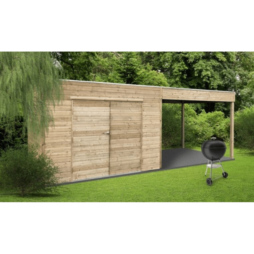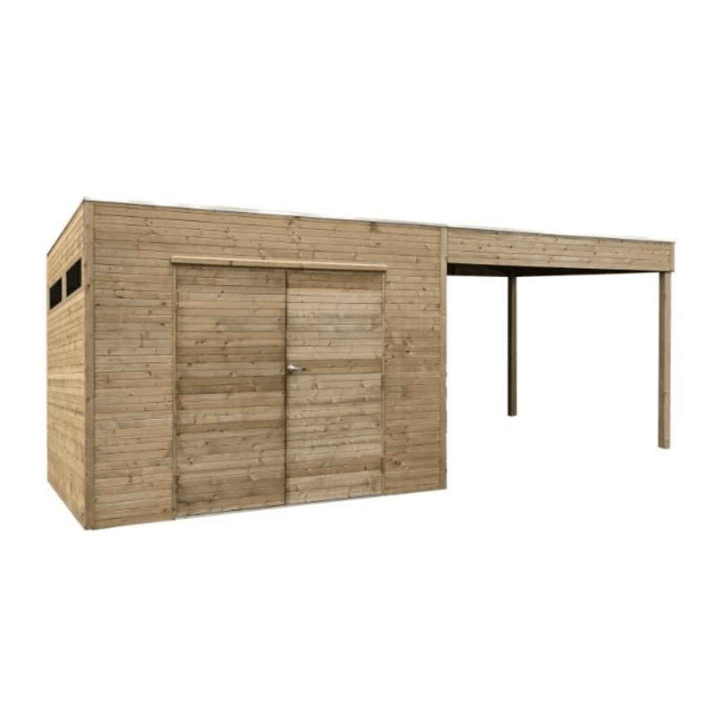 Het Solid Cube Amalfi tuinhuis combineert strak design met slimme functionaliteit. Dankzij de royale breedte en de handige zij overkapping creëer je niet alleen extra opbergruimte maar ook een gezellige plek om beschut te zitten. Ideaal voor tuinmeubilair, fietsen of tuingereedschap.