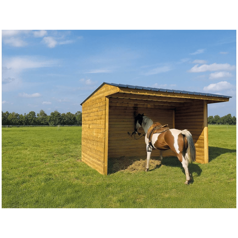 De Solid Shelter 5000 x 2920 mm is een robuuste schuilstal die dieren een veilige en droge plek biedt. Dankzij de ruime afmetingen en stevige constructie is deze shelter ideaal voor gebruik in de weide of tuin.