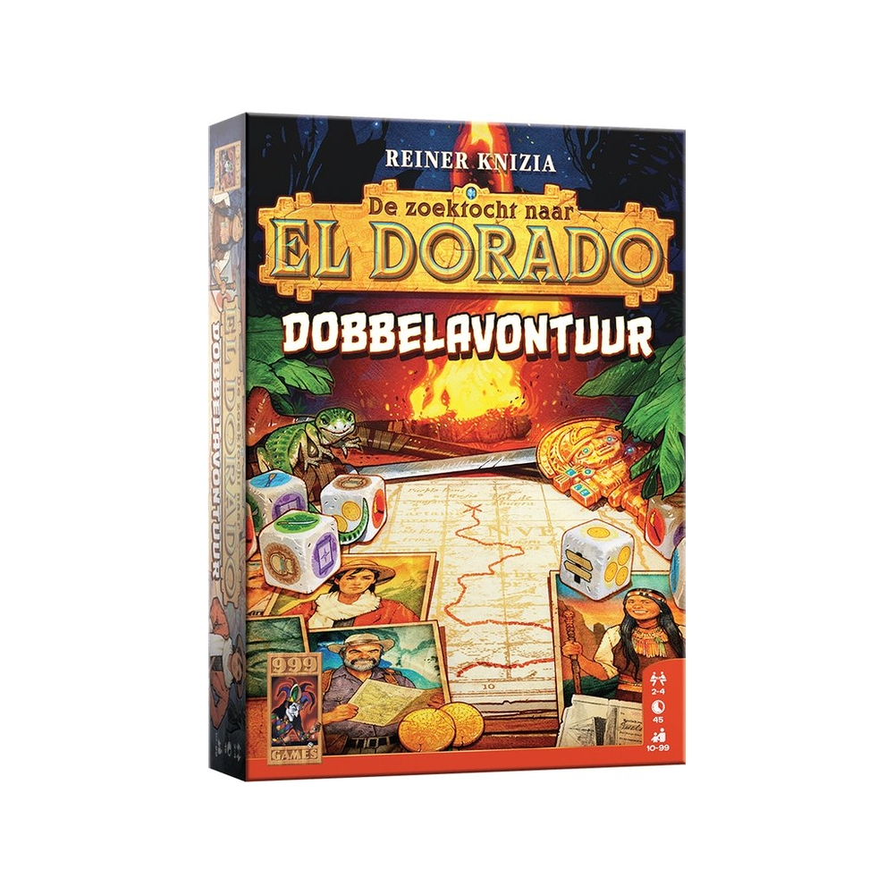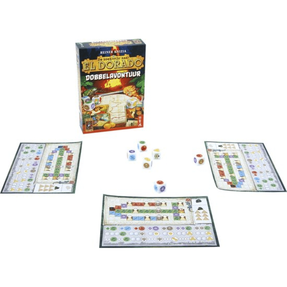In De Zoektocht Naar El Dorado: Dobbelavontuur gooi je dobbelstenen, verken je het oerwoud en probeer je als eerste de gouden stad te vinden. Kies slim je pad, maak offers bij tempels en verzamel middelen om je tegenstanders te slim af te zijn.- Avontuurlijk dobbelspel voor 2-4 spelers