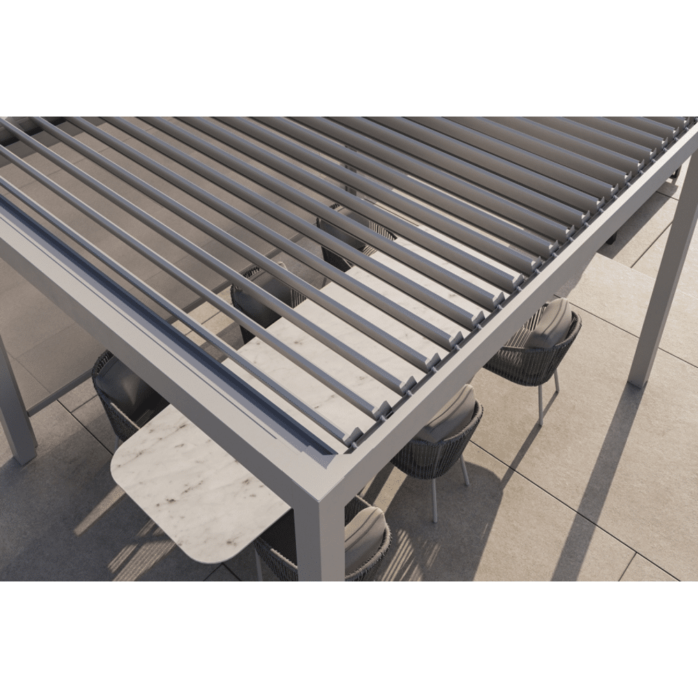 • Manueel verstelbaar dak met flexibele shutters voor zon of schaduw