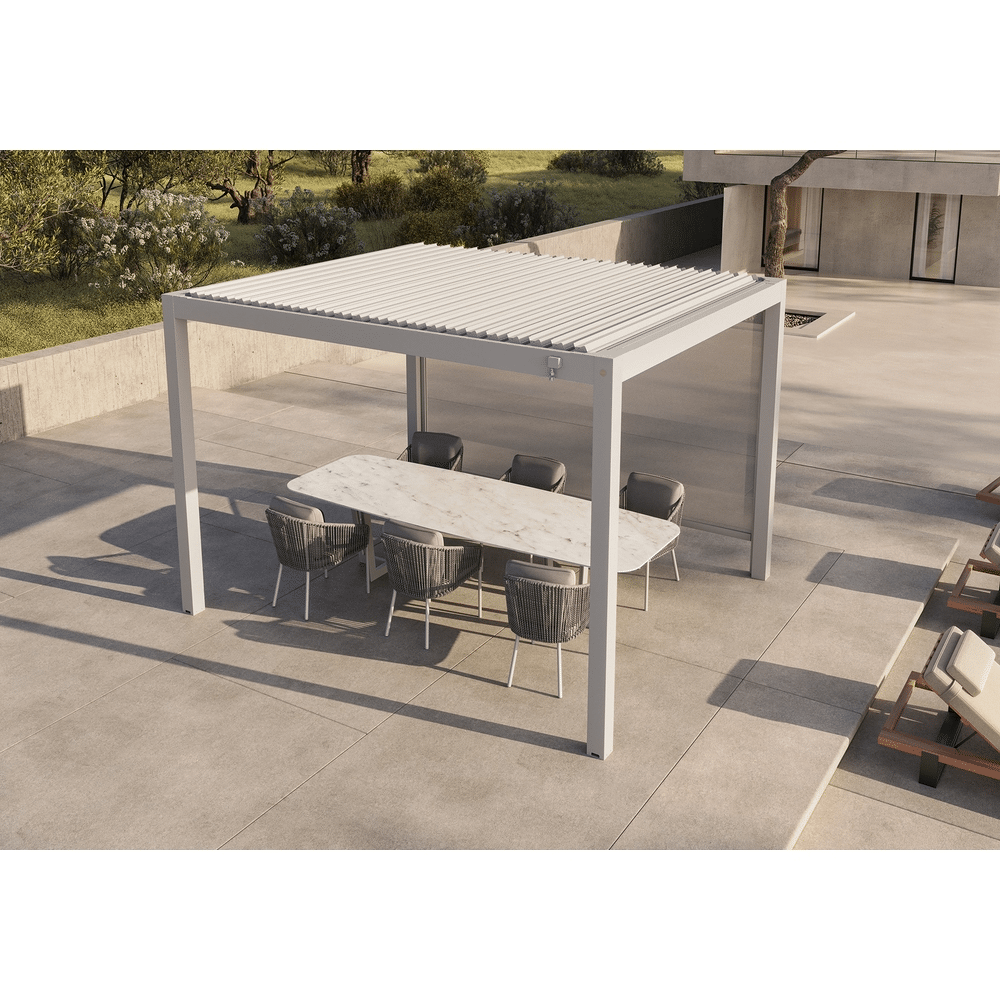 Breng stijl en functionaliteit samen in je tuin of op je terras met deze luxe aluminium gazebo. Deze hoogwaardige overkapping van SUNS is ontworpen om eenvoudig te plaatsen te zijn en biedt een duurzame oplossing voor beschutting in de buitenlucht. Dankzij het moderne ontwerp en zachte beige kleur (Camel Sand) past deze overkapping perfect bij verschillende tuin- en terrasstijlen. Het dak is voorzien van handmatig verstelbare shutters, zodat je zelf bepaalt hoeveel zonlicht of schaduw je wilt. Zelfs bij regen zit je comfortabel droog dankzij het geïntegreerde afvoersysteem dat het water netjes via de poten afvoert. Met zijn robuuste aluminium frame is deze gazebo een solide, onderhoudsarme toevoeging aan je buitenruimte – ideaal voor wie zonder bouwproject wil genieten van een overdekt terras.