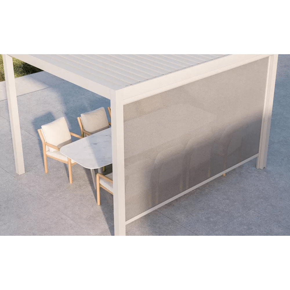 • Rolgordijn (371 cm) voor overkappingen met zijde van 395 cm lang