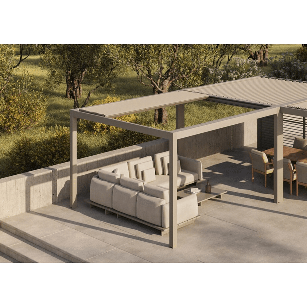 Vergroot je buitenruimte (in de breedte) met deze luxe uitbreiding voor Suns overkappingen. Deze aluminium uitbreiding heeft een afmeting van 263 x 365 x 250 cm en de uitvoering in de kleur Camel Sand sluit perfect aan bij de bestaande constructies en zorgt voor een stijlvol, uniform geheel. Het dak is manueel verstelbaar, zodat je eenvoudig de gewenste hoeveelheid licht en beschutting bepaalt. Deze uitbreiding is ideaal voor het creëren van extra zitruimte, schaduw of een beschutte eethoek in je tuin.