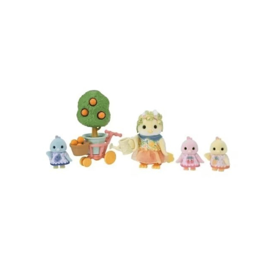 Deze Sylvanian Families set brengt kleurrijk speelplezier in jouw poppenhuis. De Familie Citroenvogel bestaat uit een lieve moeder en drie pluizige kuikens, allemaal met prachtige fruitkleuren die vrolijkheid uitstralen. Hun fluweelzachte vacht nodigt uit om te knuffelen en hun schattige fruitoutfitjes maken ze extra bijzonder. Dankzij de beweegbare vleugels lijken ze echt te fladderen.Hoe werkt het fruit plukken?