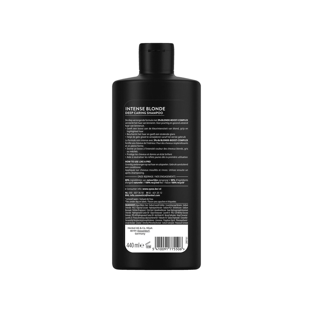 Ontdek de Syoss Shampoo Blond 440ml, speciaal ontwikkeld om blond haar te versterken en stralend te houden. Deze shampoo reinigt grondig, beschermt tegen vergeling en laat je haar zijdezacht en glanzend achter.
