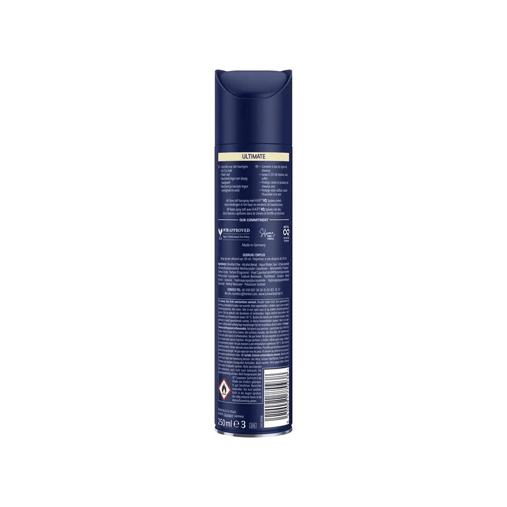 De Taft Haarspray Ultimate Hold Nr 5+ 250ml combineert maximale hold met een natuurlijke finish. Ideaal voor iedereen die zijn kapsel perfect en langdurig wil stylen.