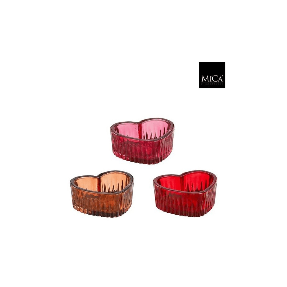 Theelicht Houder Hart Roze Rood Oranje - L8,5xb7,5xh3,5cm Assortiment Prijs Per Stuk