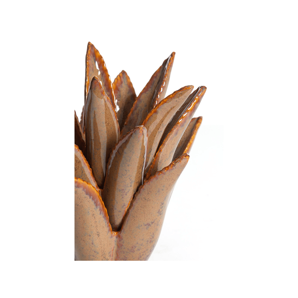 Een keramische houder met cactusvorm en een brown-grey afwerking, ideaal voor theelichtjes.Creëert een gezellige en uitnodigende sfeer in elke ruimte.