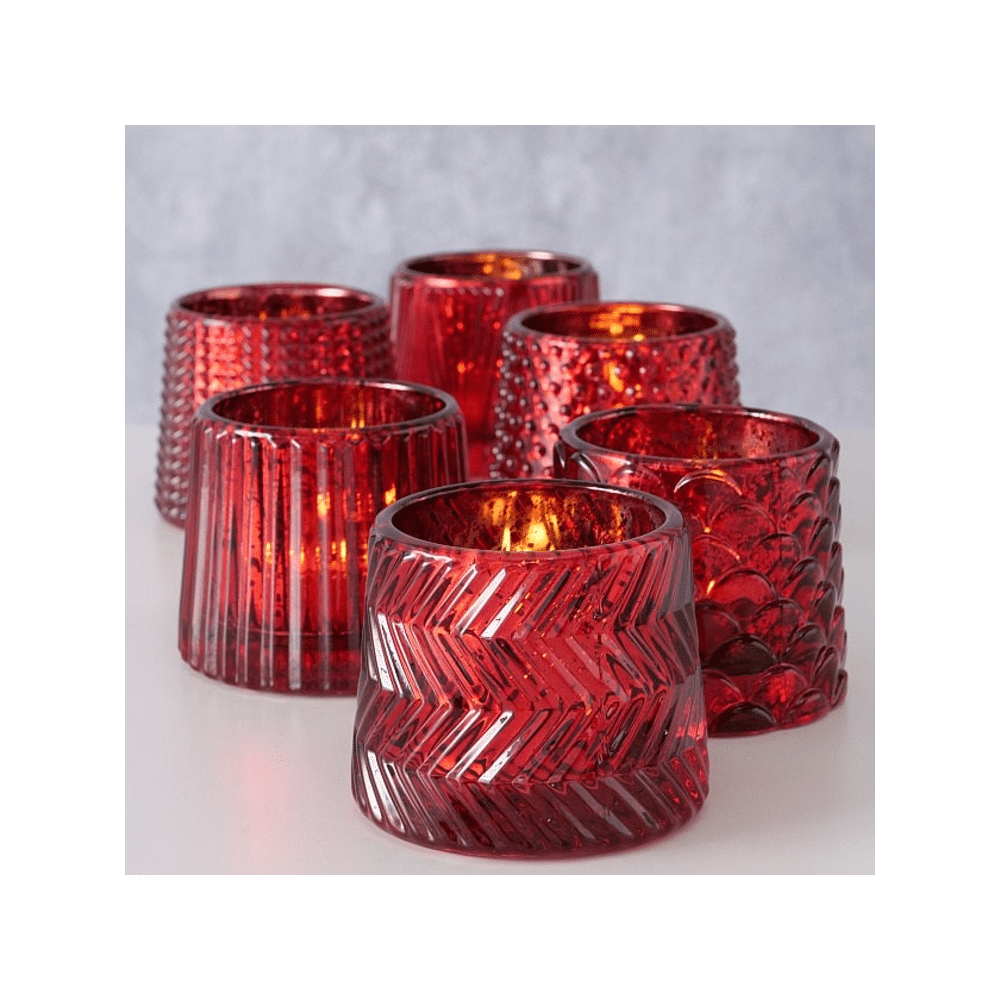 Theelichthouder Sabena Rond H7Xb8Cm Glas Rood 6 Assortimenten Prijs Per Stuk