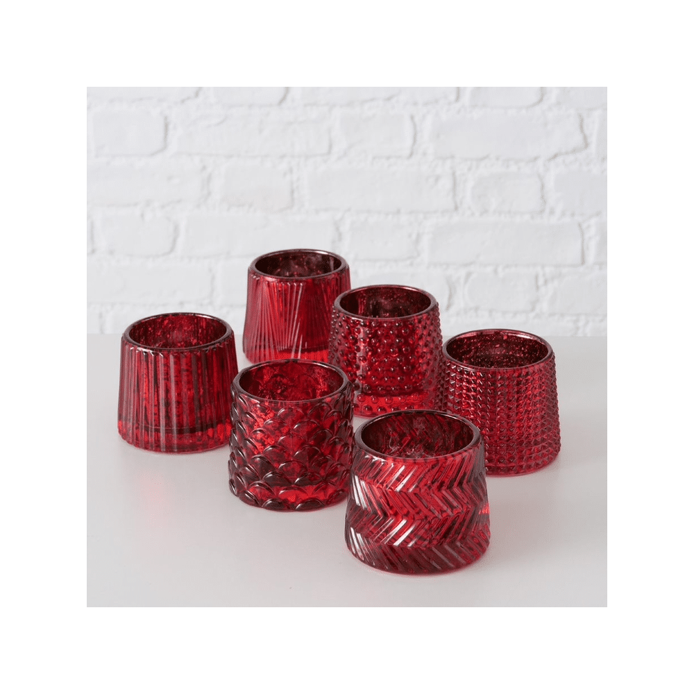 - Product: Theelichthouder Sabena Rond H7Xb8Cm Glas Rood 6 Assortimenten Prijs Per Stuk