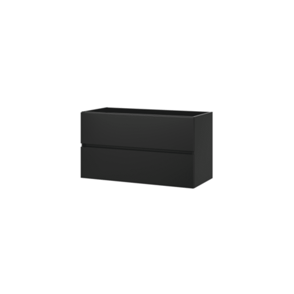 Geef jouw badkamer een moderne upgrade met deze 100 cm wastafelonderkast in mat zwart. Strak design en slimme opbergruimte komen hier perfect samen voor een verzorgde en rustige look.
