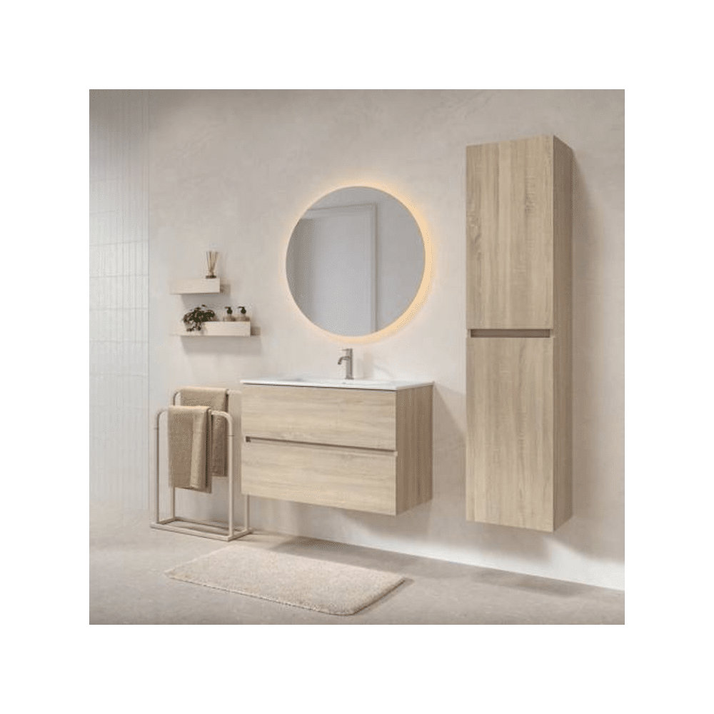De Tiger Condo hoge kolomkast 160 cm in licht eiken is de perfecte keuze voor wie een warme, ruime en stijlvolle opbergoplossing zoekt in de badkamer.