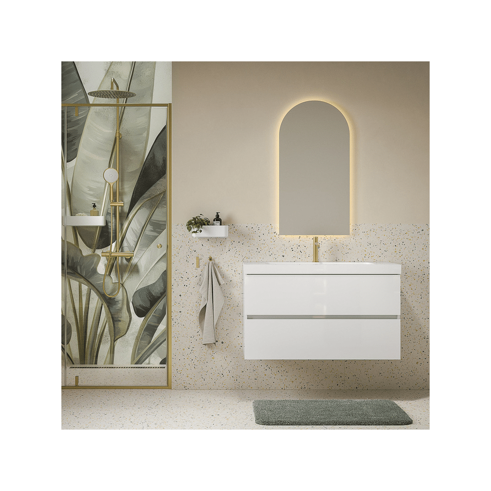 De hoogglans witte afwerking weerkaatst licht waardoor jouw badkamer groter en frisser aanvoelt. Perfect voor een moderne en tijdloze look.