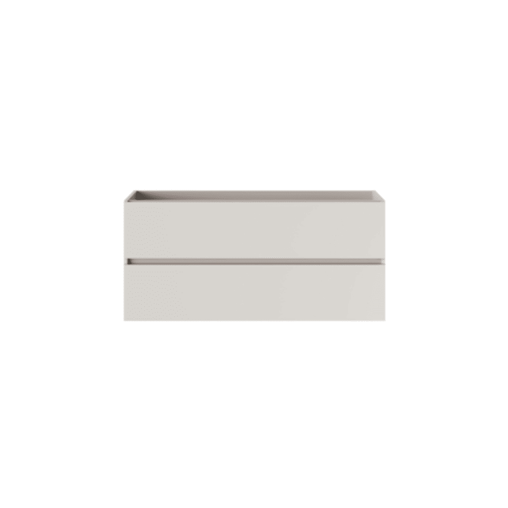 Deze wastafelonderkast in mat greige brengt een zachte en moderne sfeer in jouw badkamer. De subtiele mix van grijs en beige zorgt voor een tijdloze uitstraling die moeiteloos combineert met zowel warme als strakke interieurs. Ideaal voor wie houdt van rust en elegantie.