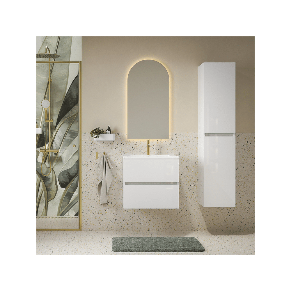 De hoogglans witte afwerking reflecteert licht waardoor jouw badkamer groter en lichter aanvoelt, met een strakke en tijdloze look.
