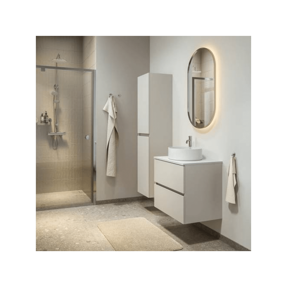 Lichte neutrale kleuren maken jouw badkamer optisch ruimer en zorgen voor een serene uitstraling. Deze onderkast brengt balans tussen warmte en modern design.