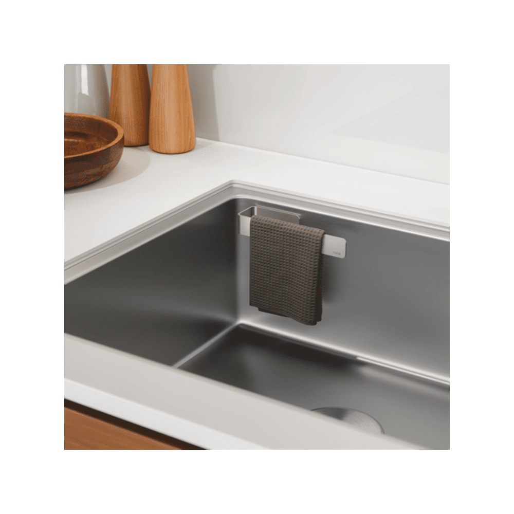 Een handige mini haak in rvs geborsteld die perfect past in elke badkamer of keuken.Klein, stevig en helemaal klaar om jouw handdoek of keukendoek op te hangen.