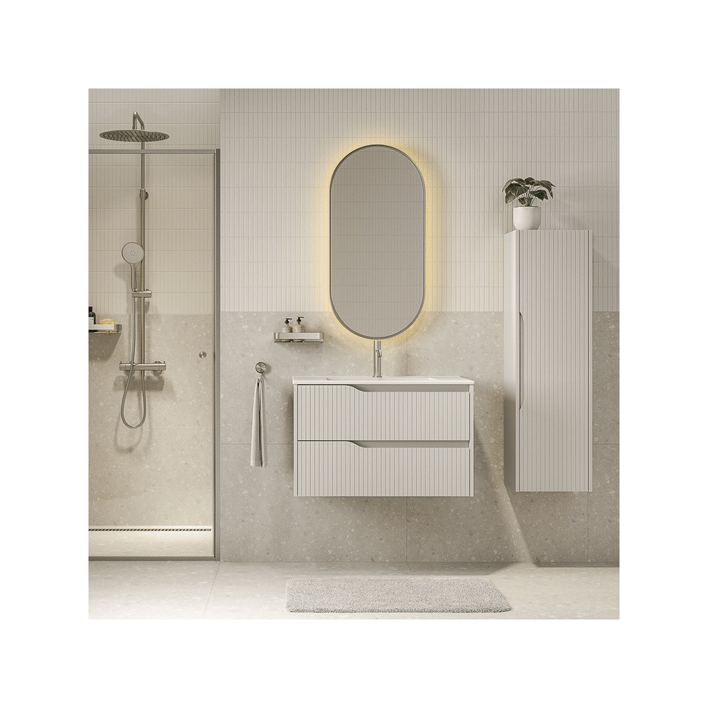 Deze hoge kolomkast in mat greige brengt meteen balans en elegantie in jouw badkamer. De zachte mix van grijs en beige zorgt voor een warme, tijdloze uitstraling die perfect past in zowel moderne als natuurlijke interieurs. Ideaal om ruimte en rust te combineren.