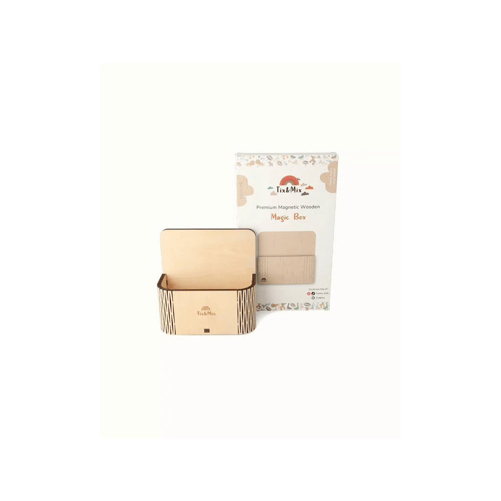 Met de Tix en Mix Magnetic Magic Box hou je de speelruimte netjes én inspirerend. Deze houten opbergdoos klikt eenvoudig magnetisch vast aan je wandbord en biedt een vaste plek voor kleurpotloden, magnetische stukjes en kleine schatten.
